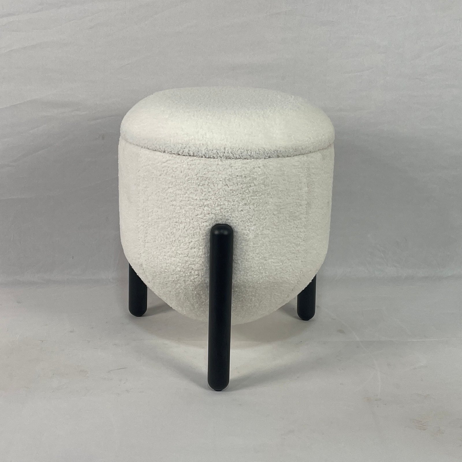 Designed to sell on sight, this Small Round Bouclé Ottoman brings texture-forward styling into a clean, modern form. The drum-shaped seat is wrapped in tactile bouclé, while the black-finished legs create a crisp architectural contrast—making it an easy add-on in both retail displays and interior projects.